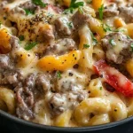 A delightful dish combining creamy, cheesy goodness with the flavors of a classic cheesesteak, perfect for any night of the week.